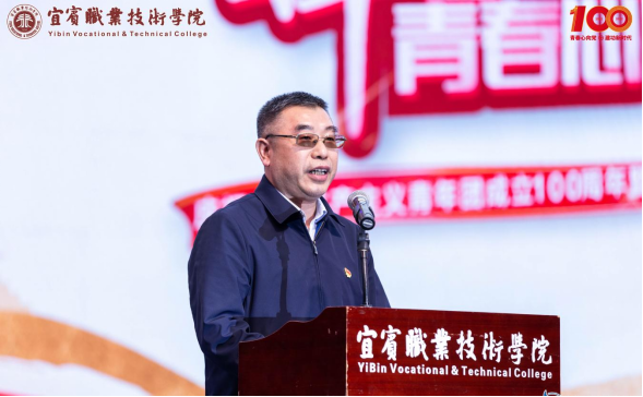 为深入学习宣传贯彻习近平总书记在庆祝中国共产主义青年团成立100周年大会上重要讲话精神,激励全院团员青年坚定不移听党话、跟党走, 5月16日晚,由共青团宜宾职业技术学院委员会主办的庆祝中国共产主义青年团成立100周年大会暨“百年奋斗路·青春心向党”五四颁奖典礼在A区足球场隆重举行。学院党委书记林世全,党委常委、副院长江仁朝,党委常委、副院长朱涛,党委常委、组织部部长陈三军,党委常委、宣传统战部部长叶茜,以及相关部门负责人,各二级学院党总支书记、副书记以及团员青年代表参加活动。