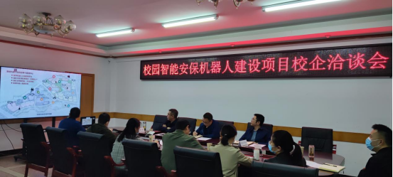 会上,林世全对宜宾城市发展、学院基本情况、发展定位和“元宇宙”数字经济发展规划作了介绍。张龙泉总经理和白雪总监对公司机器人的应用场景及产业发展情况与方向进行了具体介绍,智能制造学院副院长杨军就我院智能安保机器人项目建设需求和学院新校区“元宇宙”智慧校园的整体规划作了简述。校企双方就可开展的合作内容及方式进行了充分、坦诚的交流和讨论。