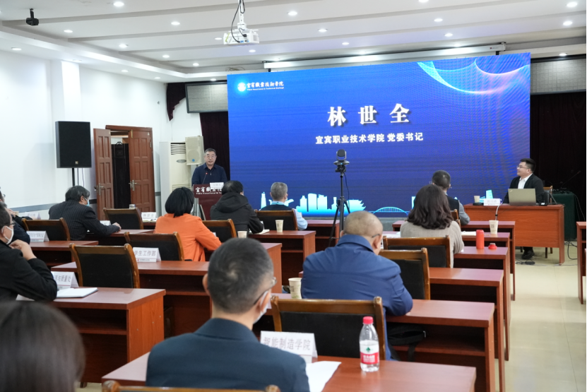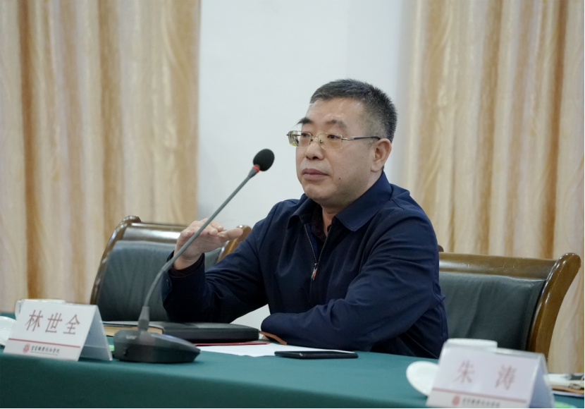 讲座之后,曾玉刚处长一行与学院领导、相关部门及二级学院负责人举行交流座谈会,党委书记林世全出席会议并讲话。座谈会由学院党委常委、副院长朱涛主持。