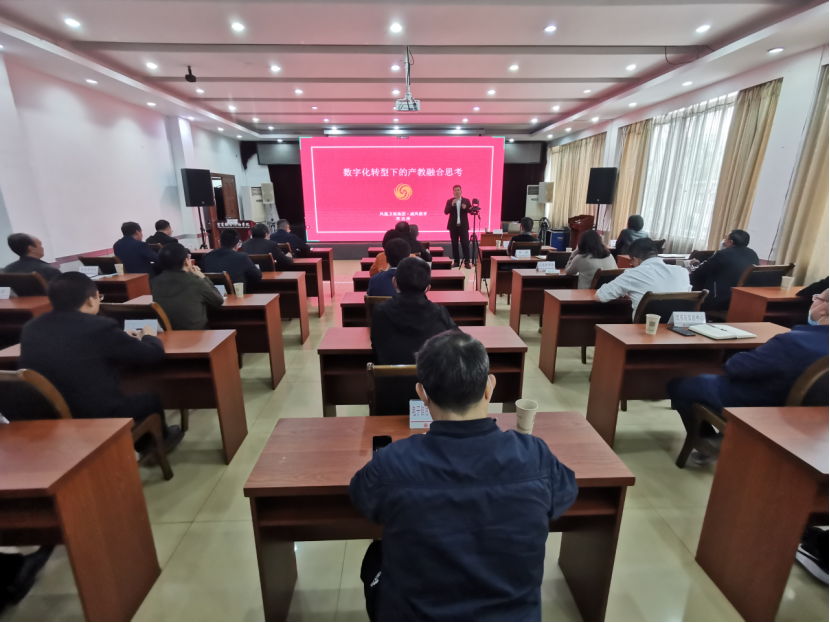 11月13日下午,凤凰卫视集团·威凤国际教育科技(北京)有限公司总经理郭功涛在学院科苑宾馆会议室,作题为《数字化转型背景下的产教融合》专题讲座。郭功涛总经理结合凤凰教育十年产教融合办学经验,从数字化转型的十大趋势、数字产业人才培养模式、产教融合矩阵、产教融合经验案例以及数字化产业未来发展前景等方面分享了产教融合和产业学院建设的思考。本次讲座由党委书记林世全主持,学院各部门负责人、二级学院党政负责人及专业课教师等320余人通过“线上+线下”的方式集中聆听了讲座。