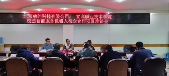 2月20日,北京劢的科技有限公司总经理张龙泉一行到校考察对接校园智能服务机器人校企合作项目,党委书记林世全参加座谈会并讲话。