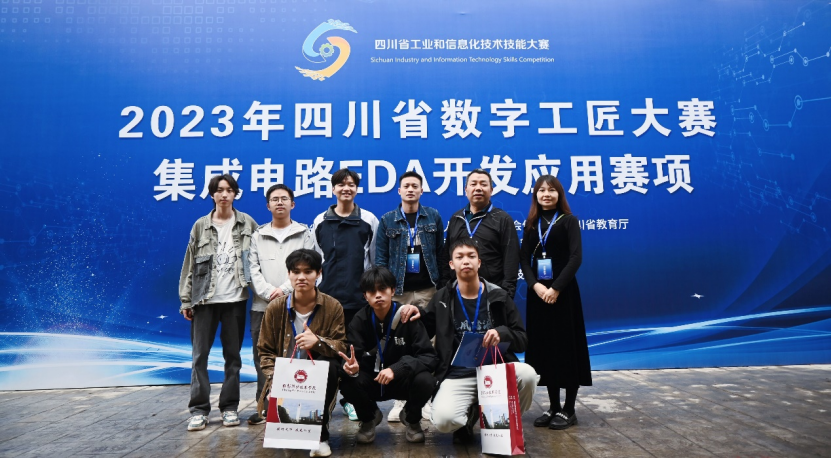 10月26—27日,“四川技能大赛—2023年四川省工业和信息化技术技能大赛暨数字工匠大赛”在成都职业技术学院举行。电子信息与人工智能学院教师罗德雄、龚怀敏、陈松明组建的参赛团队参加了集成电路EDA开发应用赛项职工组比赛,吴祥全等6名同学组成的2支参赛队参加了学生组比赛,经过两天的“理论+实操”激烈角逐,教师组最终成绩排名职工组第2名,荣获职工组二等奖,2支学生参赛队也取得了优良成绩。