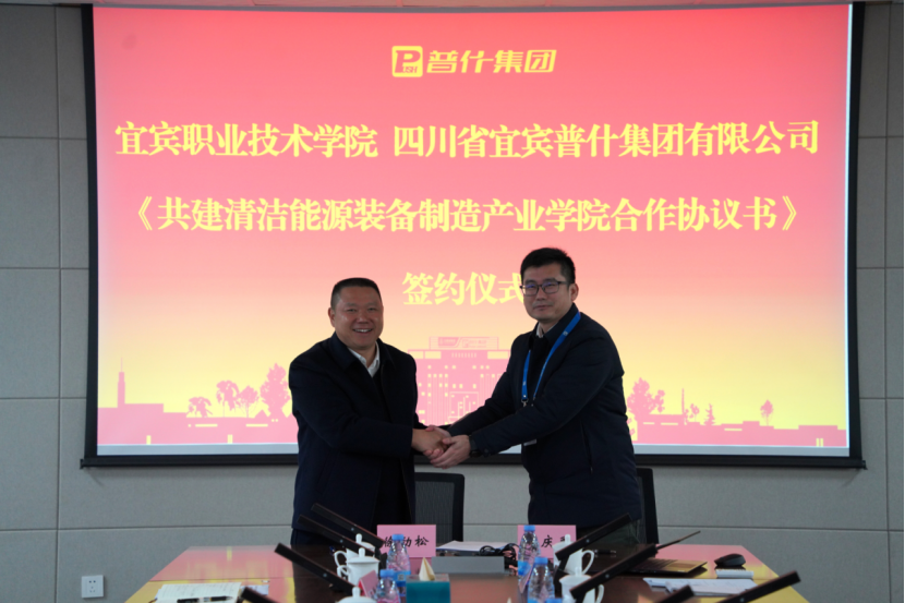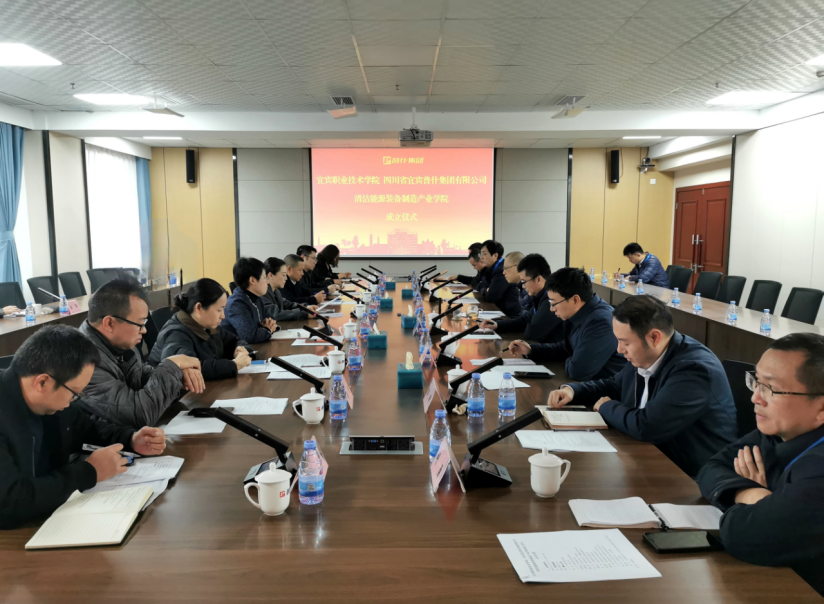 当前,宜宾市紧抓四川推动绿色低碳优势产业高质量发展的重大机遇,构建以新型工业化为主导的现代产业体系,奋力打造国家产教融合示范城市、西部地区重要的清洁能源基地。为应对产业发展和职业教育改革趋势,着力解决产业竞争日趋激烈、技术创新驱动不足、人才结构供需失衡等现实难题,作为宜宾市职业教育和国有企业的中坚力量,宜宾职院与普什集团联合组建了“清洁能源装备智能制造产学研综合平台”,并成功立项为四川省第二批产教融合示范项目。“清洁能源装备制造产业学院”的成立正是该示范项目体制机制创新的重要举措。