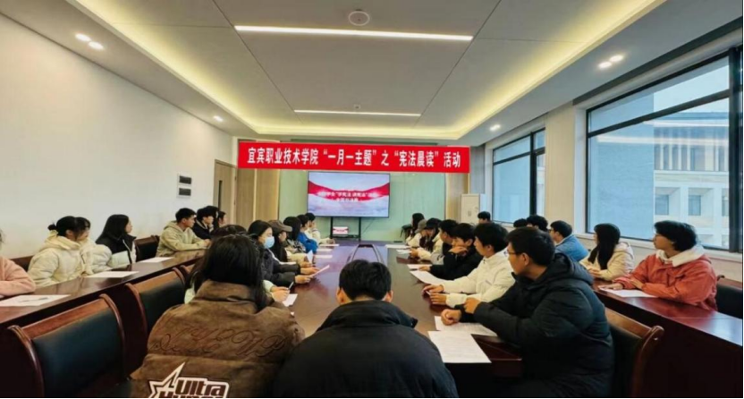 12月4日上午9:30-10:30时,我院集中组织100名学生代表通过普法网观看直播并同步参加晨读,其余无课学生在辅导员组织下在线上通过普法网观看直播、参与活动,全院共有1320名无课学生参加了“宪法晨读”活动。同时,根据教育部和省教育厅的统一安排,结合我院实际,在每周“国旗下的演讲”中,增加“宪法晨读”内容。以“宪法晨读”活动为载体,形成全员学宪法的良好氛围。