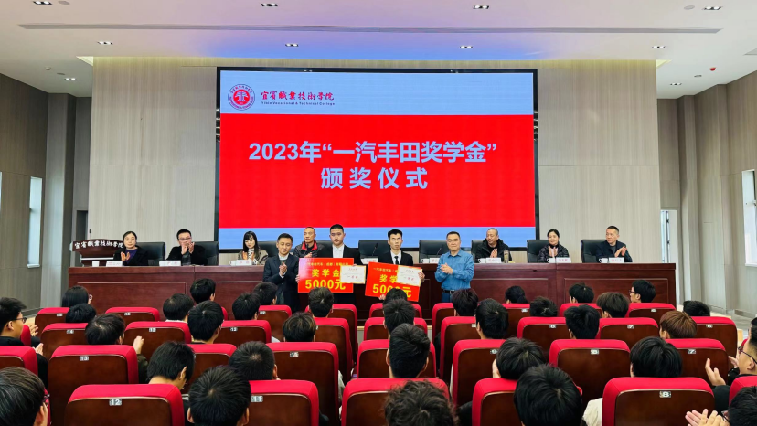 一汽丰田汽车(成都)有限公司相关人员,学院相关部门负责人及相关二级学院党总支书记,获奖学生和学生代表参加颁奖仪式。
