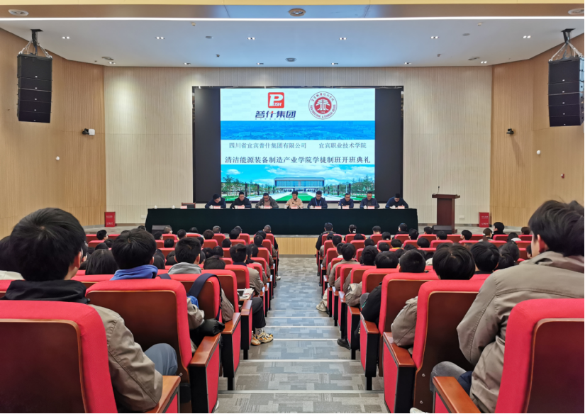 12月29日,宜宾职业技术学院隆重举行清洁能源装备制造产业学院学徒制班开班典礼。学院党委常委、副院长闫景丽,四川省宜宾普什集团有限公司总工程师闫庆禹出席典礼并讲话。