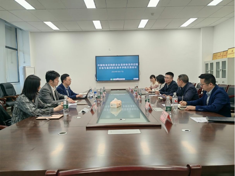 3月27日下午,中国物流与采购联合会酒类物流供应链分会秘书长李鸿宝、办公室主任杨丹、特聘专家顾问李太铼、品牌宣传部负责人程禧然一行4人到我院调研。学院党委副书记徐劲松出席座谈会并讲话。