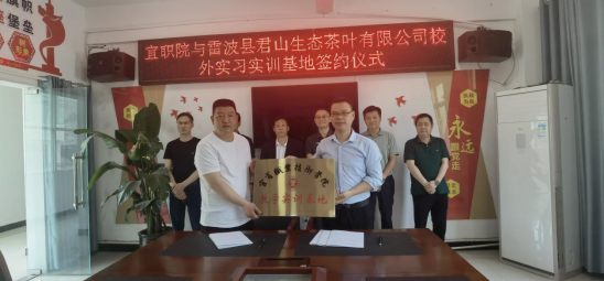 会上,人文与旅游学院院长林伟、现代农业学院副院长罗学平分别与马湖景区管理局和雷波县君山生态茶业有限公司签订了校外实习实训基地合作协议,并授牌。