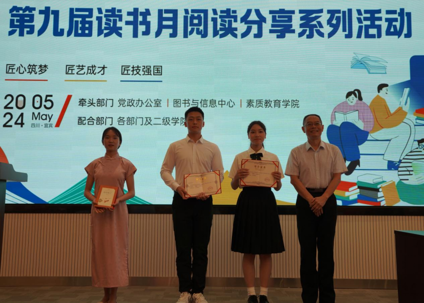 随后,三位学生代表从不同角度详细分享了自己阅读《俗世奇人》后的深刻感悟。人文与旅游学院园林技术专业学生王曦表示要对自己的专业抱有深厚的热情和坚定的信念。现代农业学院茶艺专业学生詹香立志要做一名通茶之诸要、善茶之诸艺、弘茶之文化的优秀茶艺师。建筑与环境学院造价工程专业学生唐浩伦立志做一名对自己、对项目、对合作伙伴和对业主负责的合格工程造价人。