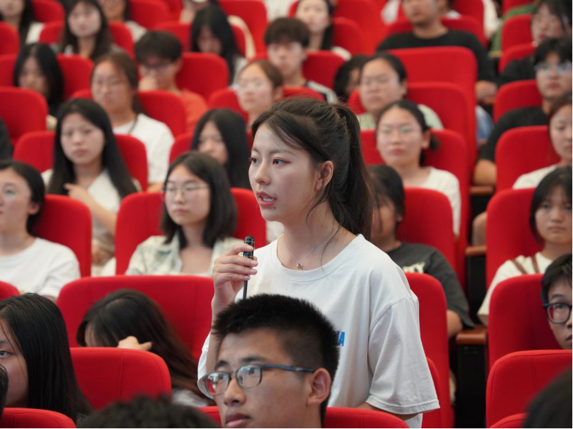 现代农业学院学生代表陈梦云分享了观后心得体会,并向伍小兵提问,伍小兵作了悉心解答。