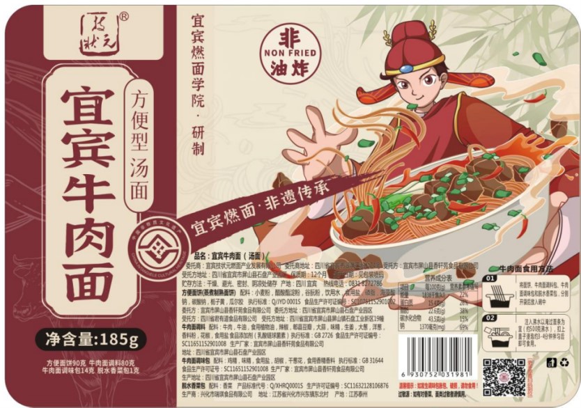 “技状元·宜宾牛肉面”是由宜宾燃面学院研制,专业教师带领学生实地考察牛肉面馆、企业,进行市场调研,了解市场需求和难点痛点,形成宜宾牛肉面生产加工标准。把地道的宜宾地方特色面食从市场带进家庭,让人们随时随地就能吃到地道的宜宾牛肉面。同时“技状元·宜宾牛肉面”将非遗传统美食文化与先进现代工艺技术完美结合,体现了地方特色美食的传承和创新,也展示了宜宾燃面学院产教融合发展成果。
