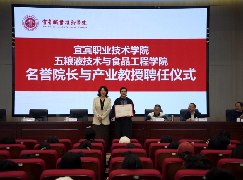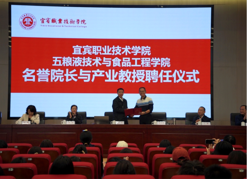 为进一步加强我院与白酒龙头企业的全面合作,促进产教深度融合,11月12日,宜宾职业技术学院五粮液技术与食品工程学院名誉院长与产业教授聘任仪式在勤勉楼231会议室隆重举行。宜宾五粮液股份有限公司技术总顾问赵东、制曲顾问钟莉,学院党委副书记、院长伍小兵,党委常委、副院长王赛,党委常委、组织部部长陈敏出席仪式。