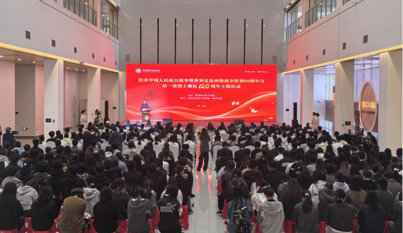 为缅怀革命先烈,赓续红色血脉,10月24日,宜宾职业技术学院纪念中国人民抗日战争暨世界反法西斯战争胜利80周年与赵一曼烈士诞辰120周年主题教育活动隆重举行。赵一曼烈士孙女、赵一曼研究院首席顾问陈红,学校党委书记伍小兵,赵一曼研究院副理事长单位和特邀单位相关领导出席活动。学校党委副书记、校长张学尽主持活动。