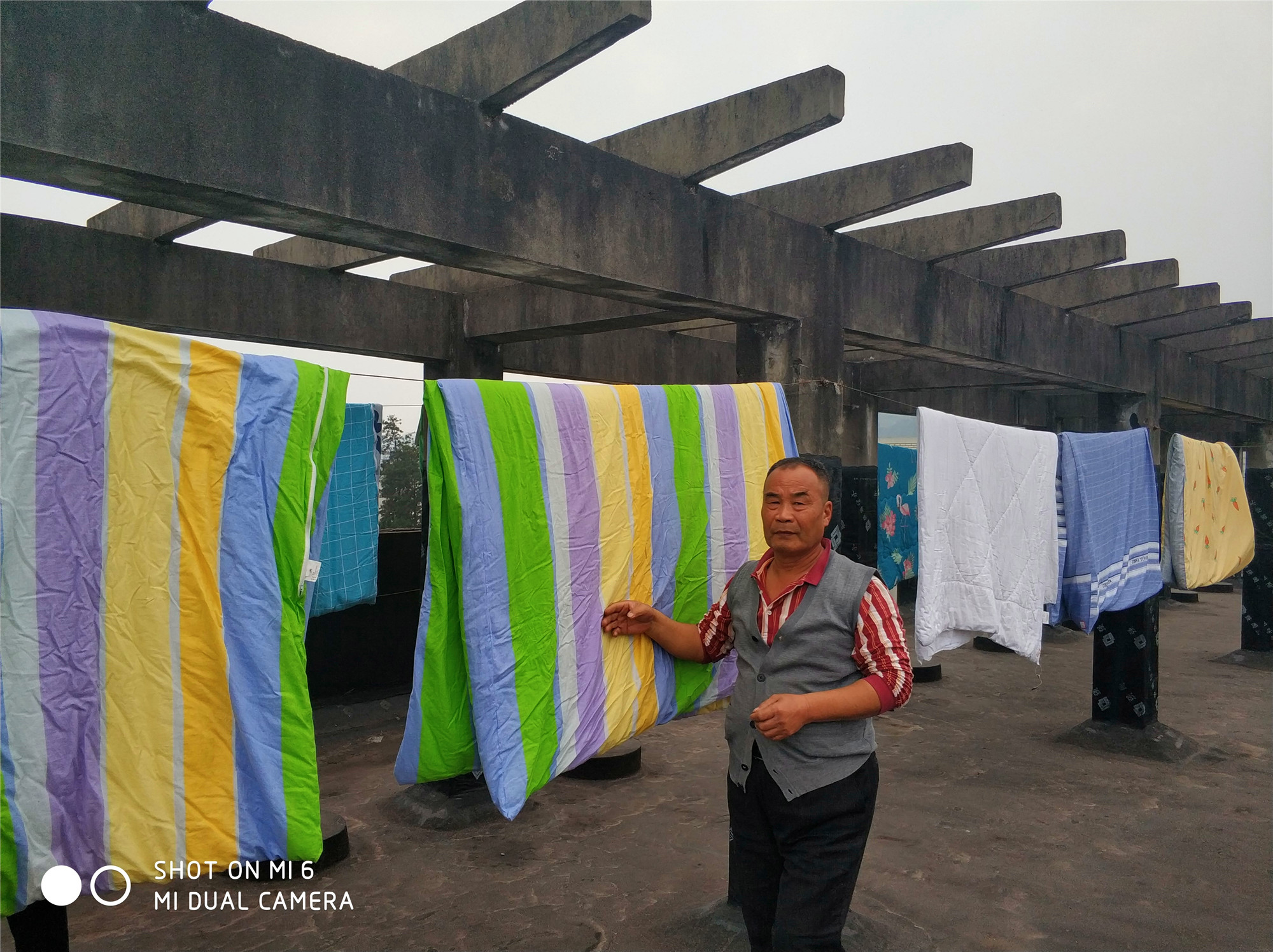 (2)将被子抱到指定位置进行晾晒,定时翻动被子确保均匀晾晒;