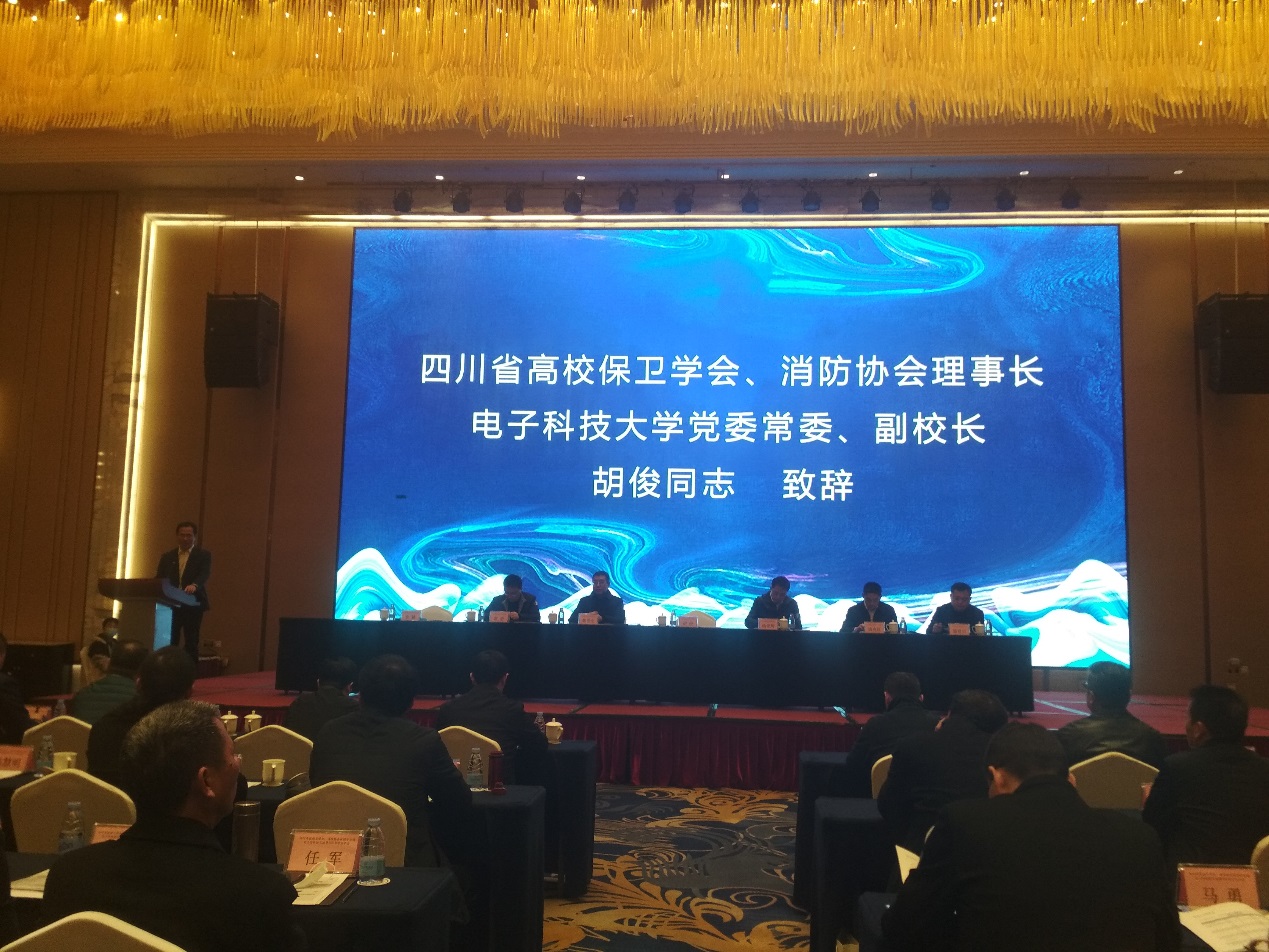 四川省高校保卫学会、消防协会理事长、电子科技大学党委常委、副校长胡俊致辞,回顾了过去一年四川省高校安全工作取得的成绩,强调高校安全工作的重要性,高度肯定了全省高校安全工作者一年里在防疫维稳中为校园安全稳定工作付出的辛劳和努力,并致以真诚的感谢,特别向承办本次高校安全年会的宜宾职业技术学院表示感谢。并对与会者来年工作提出了希望和要求。